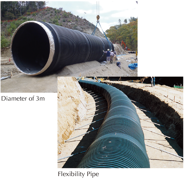 C.I.TAKIRONCIVIL is a leading company and a pioneer in the development of large plastic pipes for gravity and pressure pipes in Japan. Today, plastic pipe systems enjoy the greatest demand and the fastest growth rate worldwide. We provide these pipe system for industrial applications such as intake/outfall, chemicals, drainage, sewerage, water treatment and hydraulic transportation.