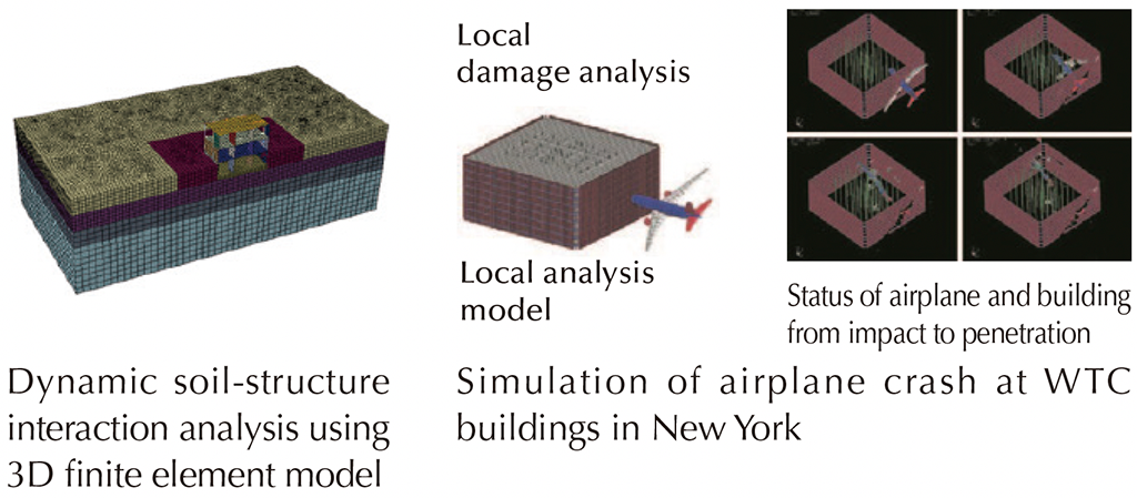 The seismic design and analysis is one of the most priority technologies in a land of earthquakes, Japan. In order to evaluate seismic effects induced into structural elements and to assess structural integrity of the building accurately, Kajima applies a dynamic soil-structure interaction analysis using 3D finite element model.