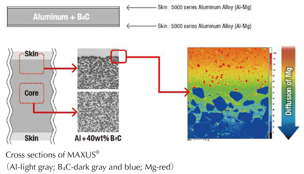 MAXUS® consists of a sandwich structure with highly corrosion resistant aluminum cladding and boron carbide powder (B4C) uniformly distributed within a highpurity aluminum matrix.