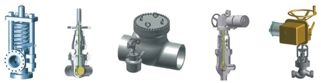 Gate valve, Globe valve, Needle valve, Check valve, Safety valve Relief valves and various other special valves.