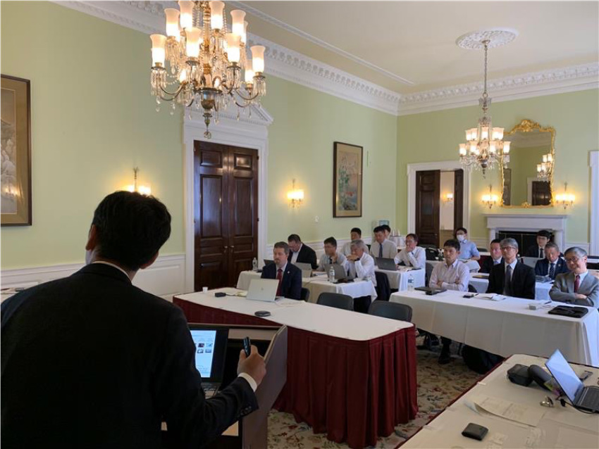 在米日本大使館にて、米国の原子力プラントメーカー等3社(NuScale、GE-Hitachi、Westinghouse)との意見交換を実施しました。米国企業からは開発を進めている炉型や今後予定されているプロジェクトの説明、国内サプライヤ企業からは各社の製品や事業の紹介が行われました。